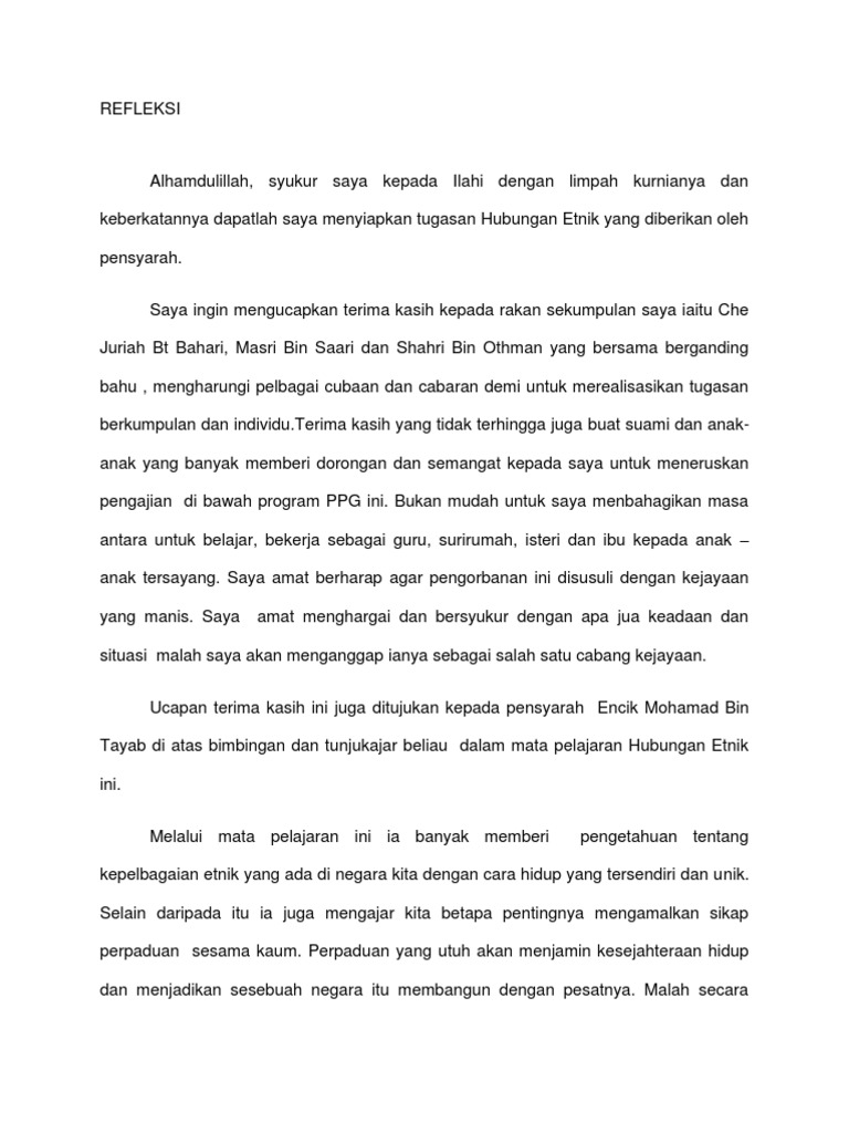 Laporan reflektif hubungan etnik merupakan sebuah subjek yang mendalami pelbagai aspek sebagai contoh membincangkan tentang konsep pembinaan negara bangsa dan. Cases for Contract II. View essay laporan reflektif hubungan etnik docx from mpu 3112 at open university malaysia.